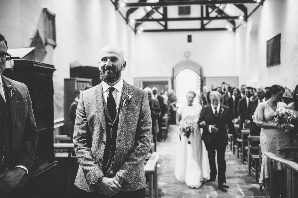 Amy looked AMAZING in here gorgeous two piece from Rachel Burgess Bridal Boutique designed by E&W Couture and Aaron looked equally good in his tweeds. After a beautiful ceremony at the ancient St Augustines church around the corner from their home and some relaxed pictures in the grounds of the church we all jumped on some buses, back to the Tramshed in Cardiff. The guests were loving the relaxed vibe as we grabbed some group pictures on the steps by the Millennium Stadium. It was great to capture the guests strolling through the streets of Cardiff, chatting, laughing and generally loving the super chilled atmosphere.
